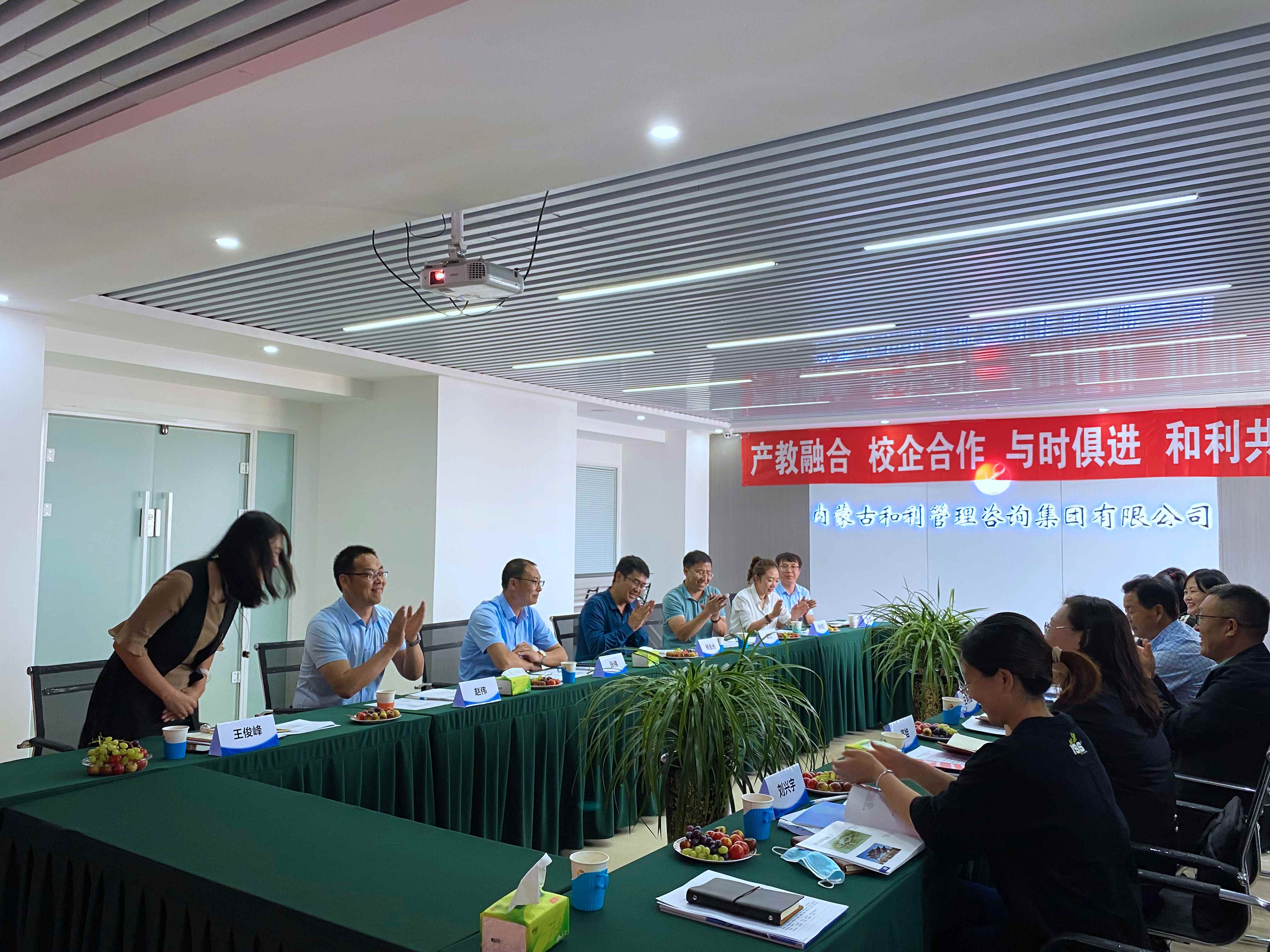 本次會議由集團副總、項目管理公司總經理渠江主持,介紹了公司參會領導及與會人員,并對校方的到訪表示熱烈歡迎。接著和利集團董事長楊金光發言,首先介紹了公司歷程,企業如何發展離不開大家的共同努力,更離不開公司“以人為本”的企業文化。又提到學校進行師資交流,企業的講師到學校代課,為學生傳授項目管理實踐經驗,摸清培養方向和側重點,為畢業生從學校走進社會起到紐帶作用。未來想與內蒙古建筑職業技術學院共同合作,借助更高水平的師資條件對企業儲備人才及畢業生進行培養。希望雙方增進資源共享,從深度和廣度上持續提升校企合作能級,構建校企共同體